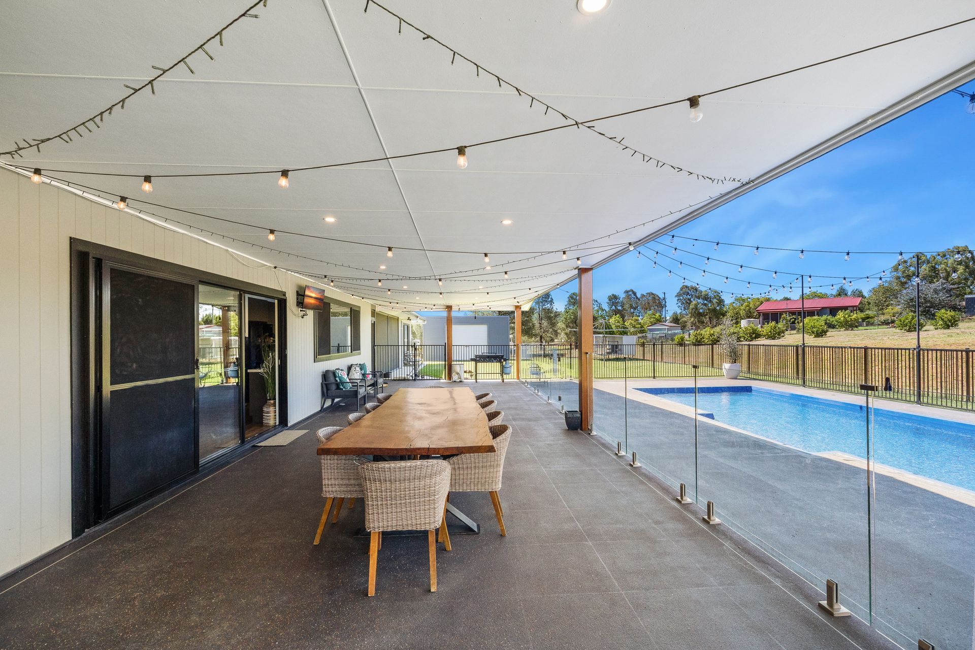 Beyond the alfresco area is the impressive 11m x 4m swimming pool, offering the perfect escape during warm Bingara summers. The pool area provides a luxurious resort-like feel, enhancing the home’s lifestyle appeal.