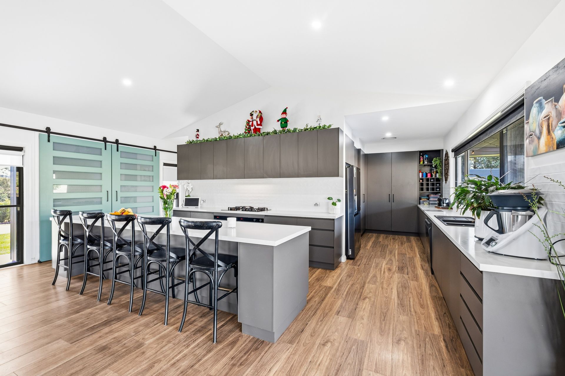 • A spacious and practical kitchen, featuring a gas cooktop, two electric ovens, ample bench space, and extensive cabinetry
